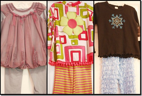 Meredith wears dresses almost everyday but I couldn’t resist these cute outfits. The pictures really don’t do them justice. The lavender and gray outfit is gorgeous and I’m still dying over the blue lace pants!